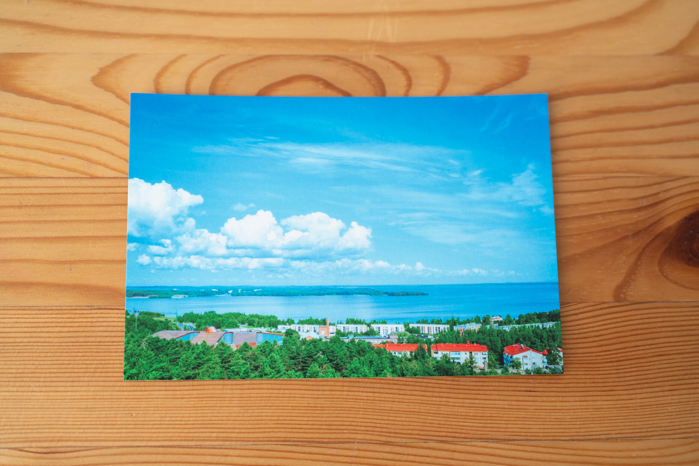 フィンランドの美しい風景を切り取った、特別なポストカードをお届けします。こちらのポストカードは、Pyynikki展望台で撮影された穏やかな景色が魅力です。